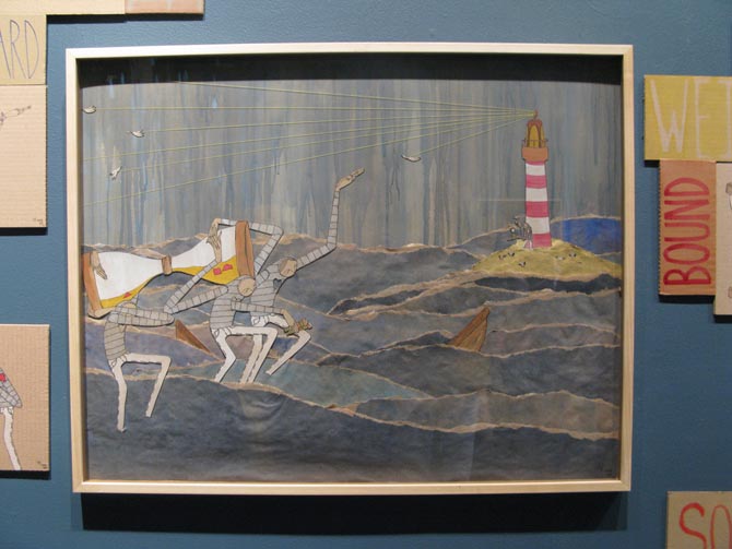 installation for this show is stunning - hundreds of rain drops suspended with his trademark figures busy in the rain; i loved it.