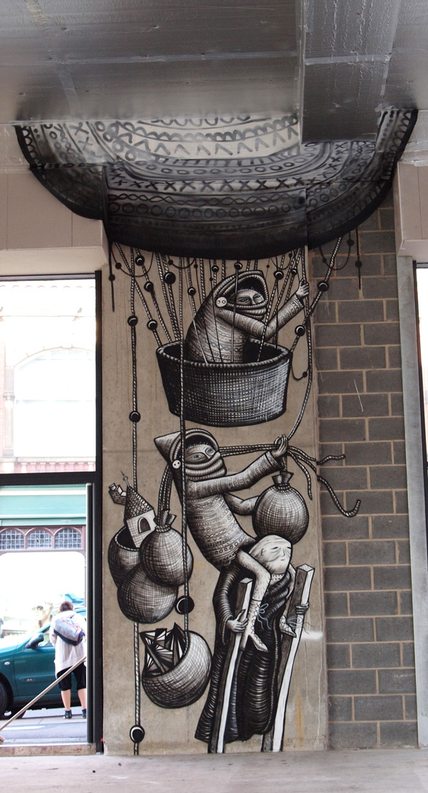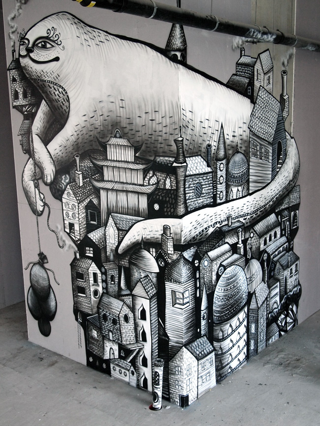 I posted some great walls by Phlegm recently, but he just sent me these new pieces; his work is so magical, and so well executed.
