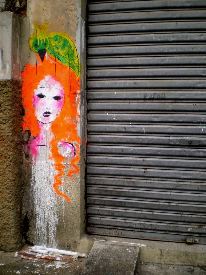 Partners PR! and Schulz work together as the ART!INSANA Crew (insane art crew). Both have a very fluid style; Schulz allows his work to drip down in the rain to transform the image.