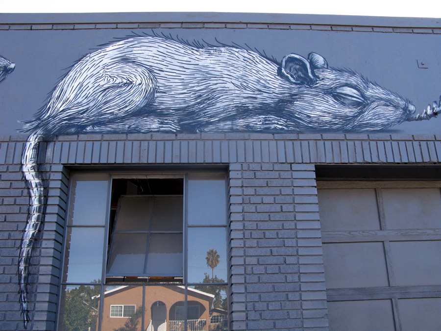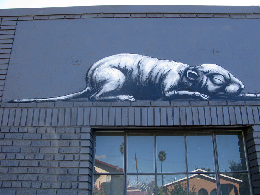These are two of three pieces Roa's painted outside in LA so far; I'll post the third and biggest soon. See
