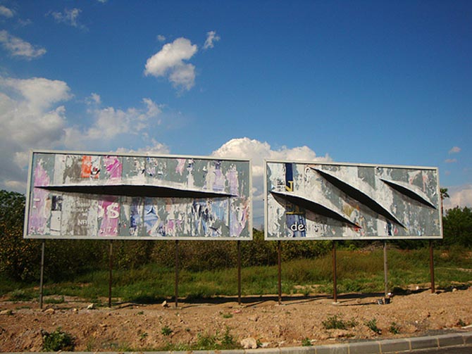 Sam3 has taken a break from his normal huge outline figures to do 'spatial concept' billboards in the style of